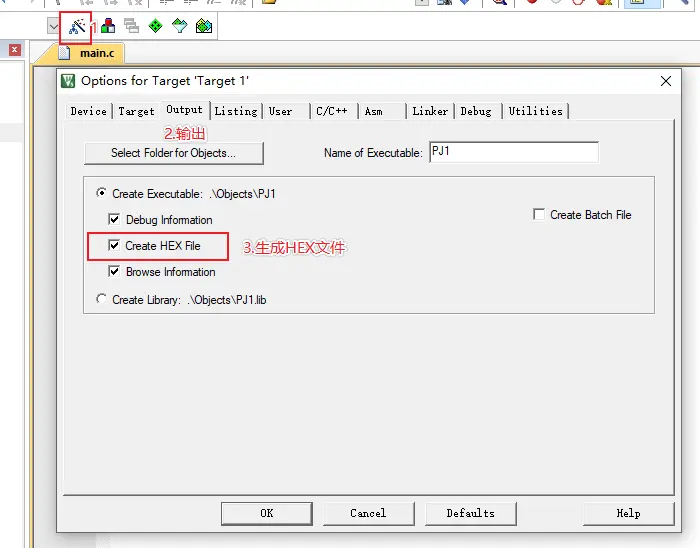 HEX文件会生成在: