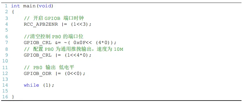 三. 寄存器版点亮一个LED灯
