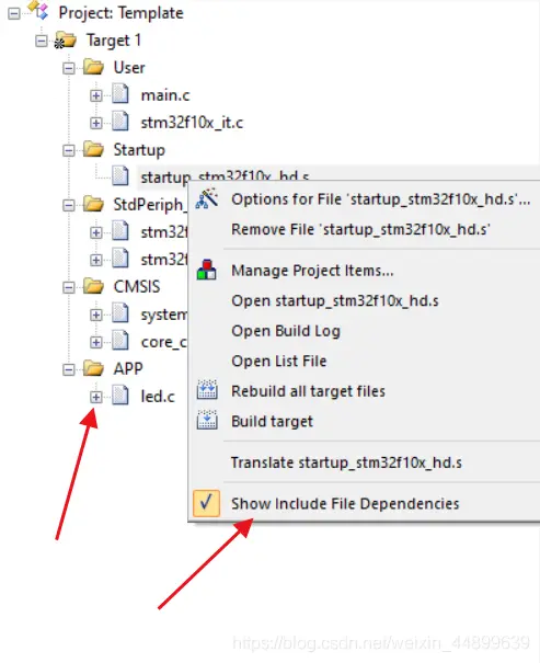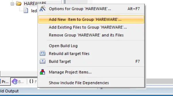 工程建立的主要步骤 1.新建3个文件夹:USER、SYSTEM、HARDWARE 2.新建led.c、led.h和test.c 3.在Target目录树上右击Manage Component,新建USER、SYSTEM、HARDWARE,并添加相关C文件(具体见前文 MDK使用方法与技巧 ),跟前面一样HARDWARE组添加led.c文件。 4.在Options for Target Target 1 对话框C/C++选项卡中Include Pathes里添加头文件路径。(这个不可少,否则编译出错,见前文 MDK使用方法与技巧 ,led.h文件不可漏掉) 5.使用SWD方式下载,具体见 MDK使用方法与技巧 ,注意reset