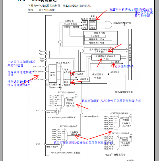 ADC的输入时钟不得超过14MHz,它是由PCLK2经分频产生。