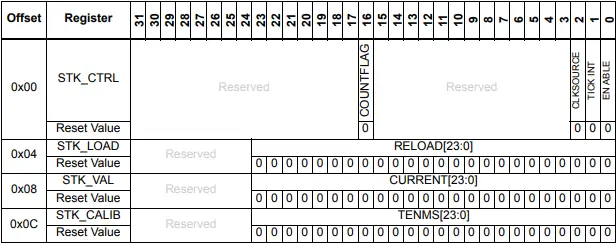 SysTick寄存器映射——STM32F10xxx Cortex-M3编程手册
