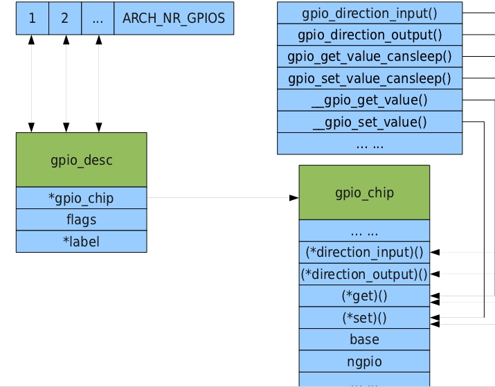 上篇最后提出的疑问是结构体gpio_chip中的成员函数set等是怎么实现的,在回答之前先介绍下gpio_desc这个结构体。
