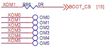 当XOM拨到2时,XOM1为输入状态,XOM1 = 1,pin4的输出为0,XOM2 = XOM3 = 0,为1-0-0,Nand启动模式,至此,OM的输入判断分析结束。