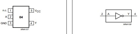 查看74LVC1G04原理图,找到pin脚图和逻辑图