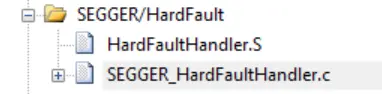 使用 JLink 硬件仿真,全速运行后暂停,就会发现停在了下图这里,这个是 SEGGER_HardFaultHandler.c 里提供的 void HardFaultHandler(unsigned int* pStack) 中断函数。