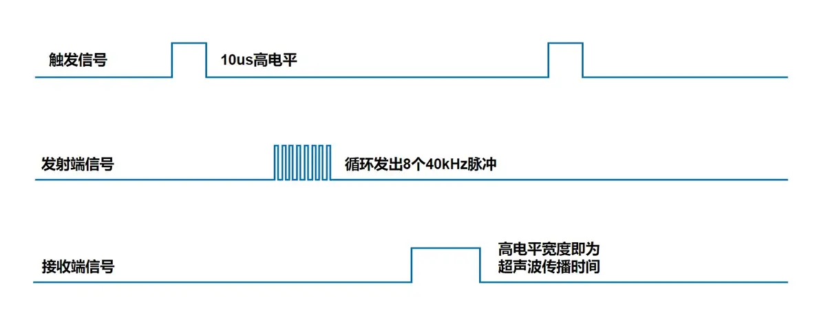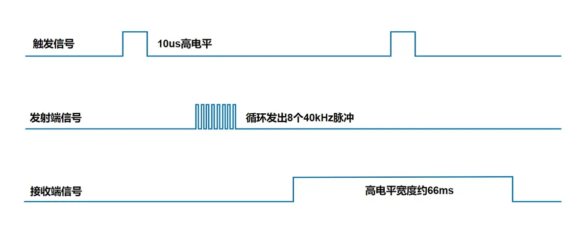 Echo 端高电平宽度即为超声波传播时间。