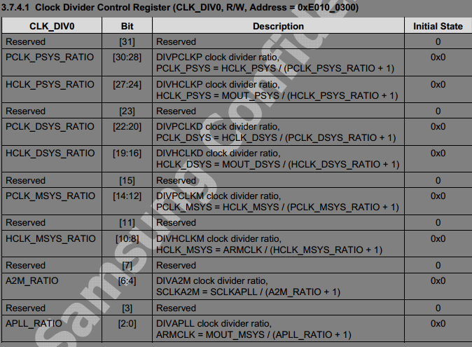 与分频相关的寄存器是CLK_DIV0,见下图4: