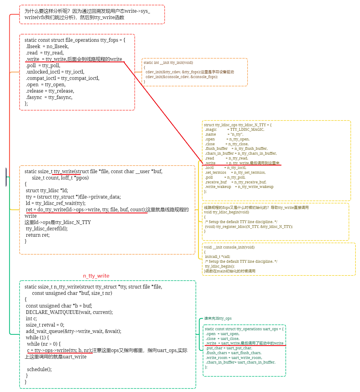用户态发生write时->VFS中的sys_write,先经过file_operation中的tty_write,这个tty_fops是在哪里注册的?