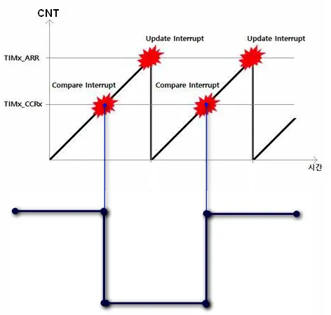 2.输出比较(当CNT=CCRx,输出电平取反)