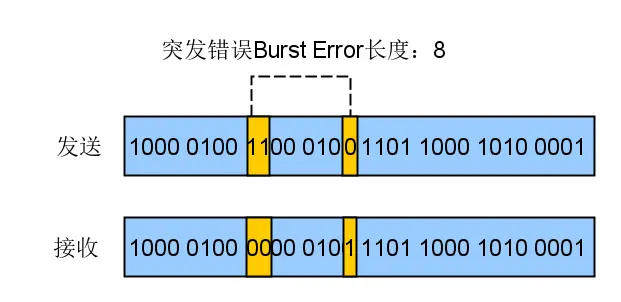 突发错误(BurstError):两个或更多个数据位在码流中出现错误,如图: