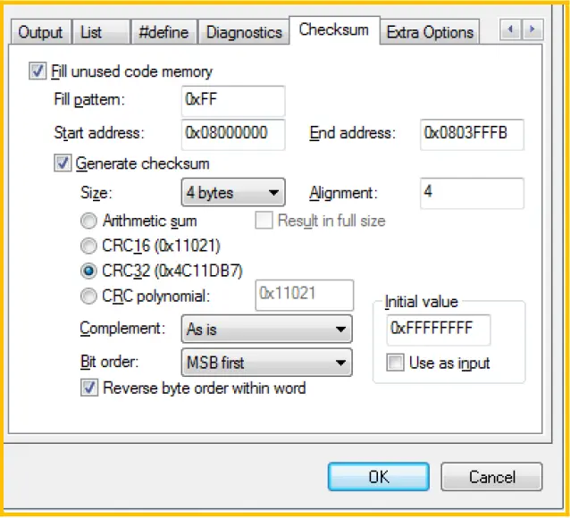 STM32 CRC 外设使用默认配置时 IAR 的配置