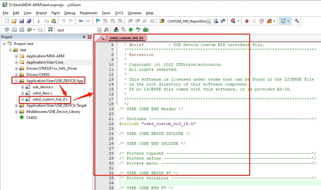 打开工程文件夹Middlewares/USB_DEVICE/App下usbd_custom_hid_if.c文件