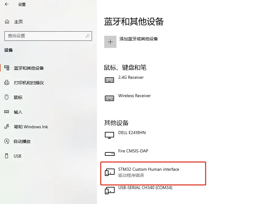 默认报告描述表为空的,此时烧录运行默认代码程序,电脑识别驱动程序错误,需要修改自定义设备的报告描述符。