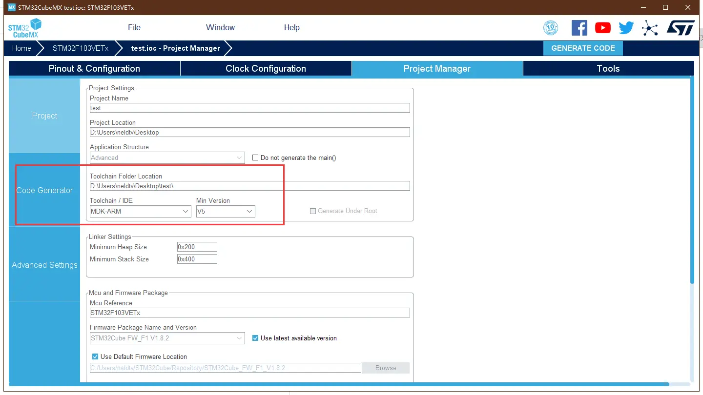 勾选:初始化代码生成在对应的外设文件。 如 GPIO 初始化代码生成在 gpio.c 中。