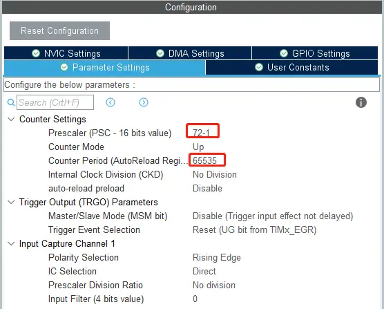 Channel1 通道1选择 Input Capture direct mode 输入捕获模式。