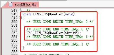 打开 stm32f1xx_it.c 中断服务函数文件,找到 TIM5 中断的服务函数 TIM5_IRQHandler()