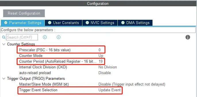 Counter Period(自动重装载值):20-1