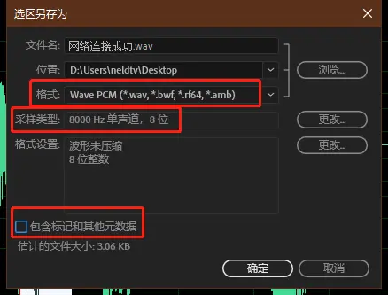 采样类型:8000 Hz,单声道,8位