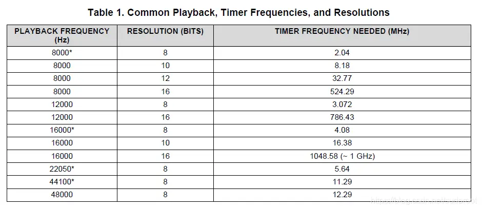 看看采样频率和位深需要定时器频率的关系如下表格:
