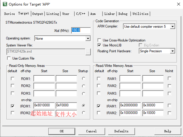 1、更改下载地址和文件大小,APP的起始地址 = BootLoader起始地址 + BootLoader的文件大小
