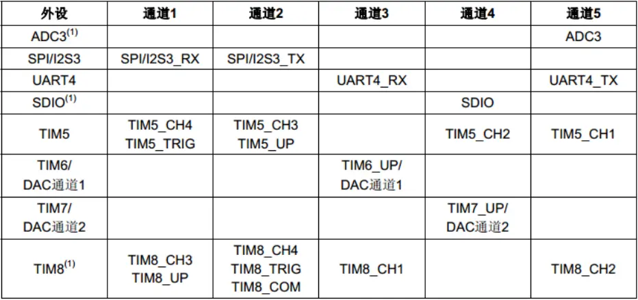 其中 ADC3、SDIO 和 TIM8 的 DMA 请求只在大容量产品中存在,这个在具体项目时 要注意。