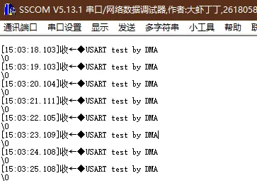 通过串口助手可以看到在接收区有数据不断的打印输出