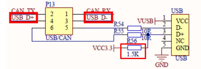 USB电路,注意关键的1.5K电阻