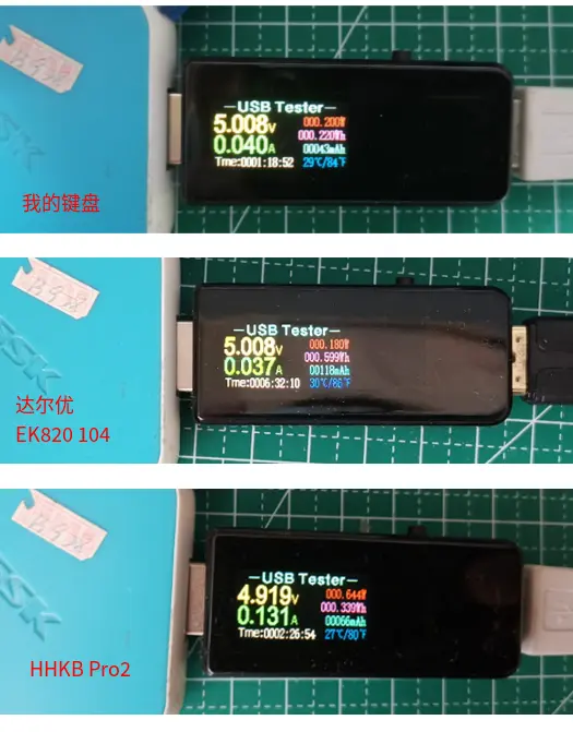 几个键盘的功率对比