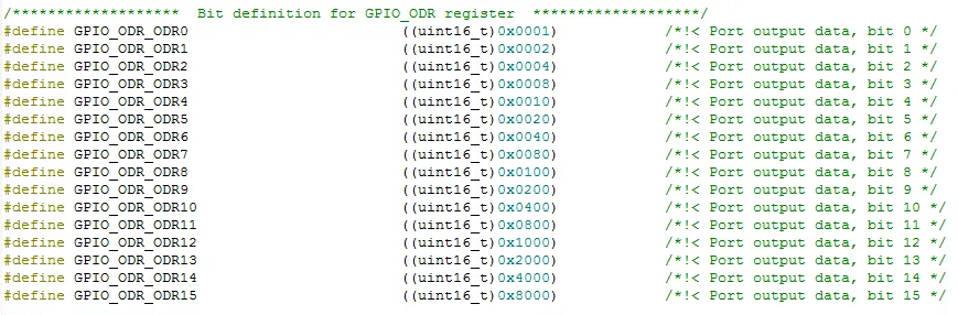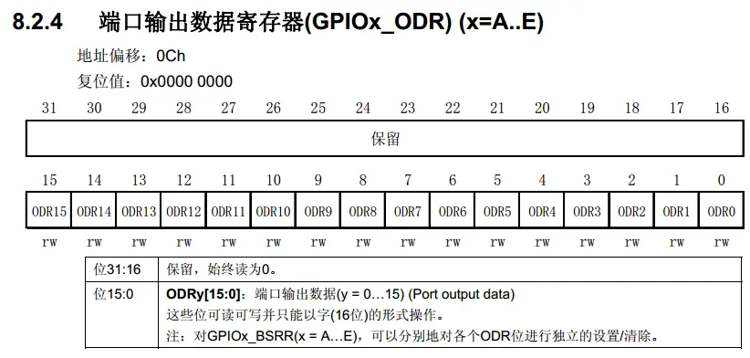 看一下GPIO功能的端口输出数据寄存器 (GPIOx_ODR) (x=A..E) :