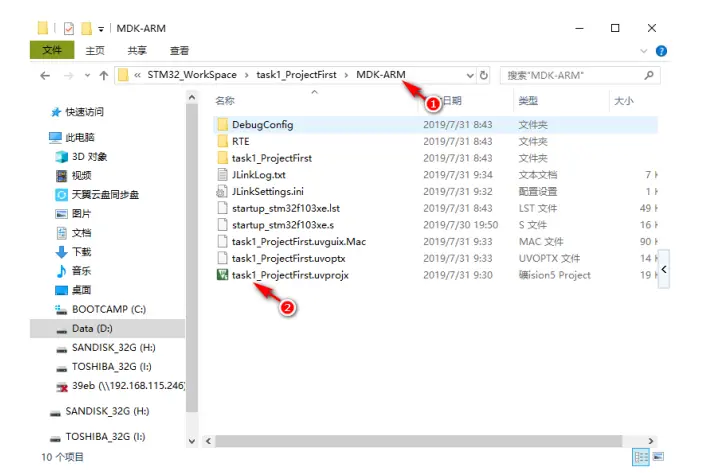 在 D 盘根目录新建文件夹“STM32_WorkSpace”用于保存所有的任务工程,然后在该文件夹下新建文件夹“task1_ProjectFirst”用于保存本任务工程;不能有中文路径;