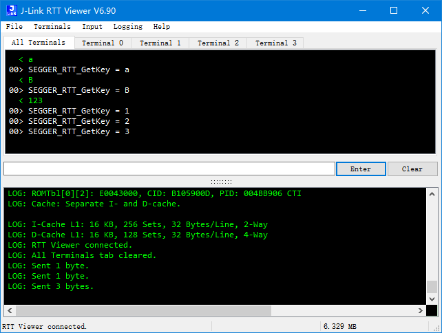 SEGGER_RTT_printf(0, 'SEGGER_RTT_GetKey = %crn', a);
