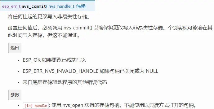 调用中使用nvs_get_*,nvs_set_*和nvs_commit()功能函数。
