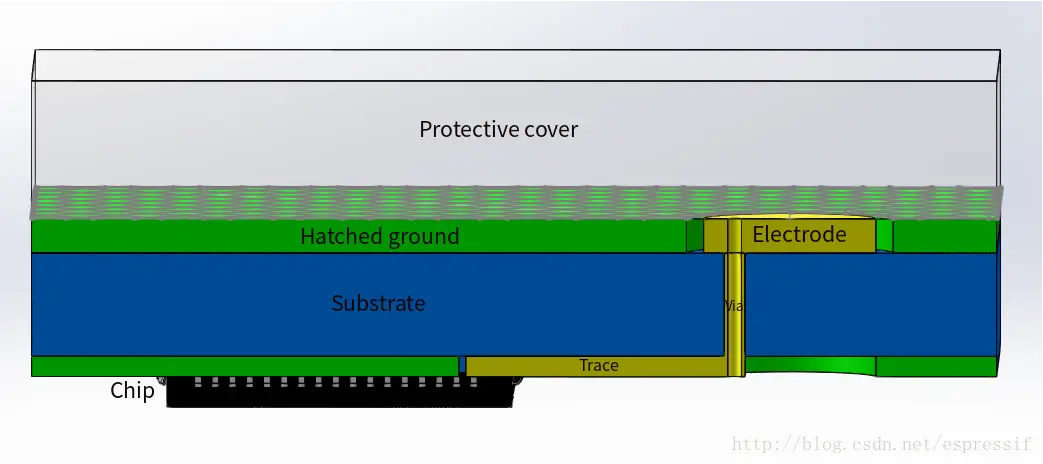保护覆盖层是指触摸面板。触摸面板必须是绝缘材质,作用是隔离触摸电极与外部环境,起到保护作用。但保护覆盖层会降低触摸的灵敏度,需要根据应用场景选择合适厚度、材质。触摸电极