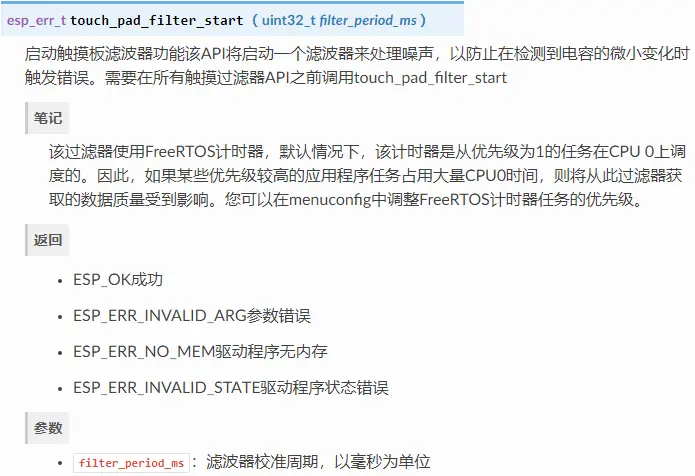 您可以使用停止过滤器touch_pad_filter_stop()。如果不再需要,可以通过调用删除过滤器touch_pad_filter_delete()。