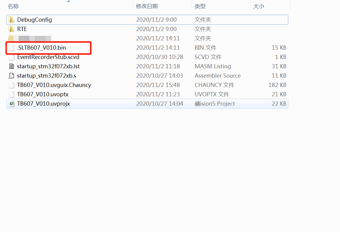 4、到工程文件夹里找到这个bin文件,右击该文件,点击属性就可以查到这个文件的大小