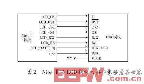 与LCD模块的接口电路如图2所示。 4 系统软件设计 系统硬件上电复位后,初始化函数会对硬件层进行初始化配置,包括I/O口的方向配置。在对系统硬件层正确的初始化以后,可以通过Nios