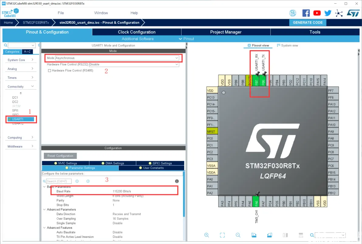 本篇文章主要介绍如何使用STM32CubeMX实现串口DMA读取,并且打印出去。