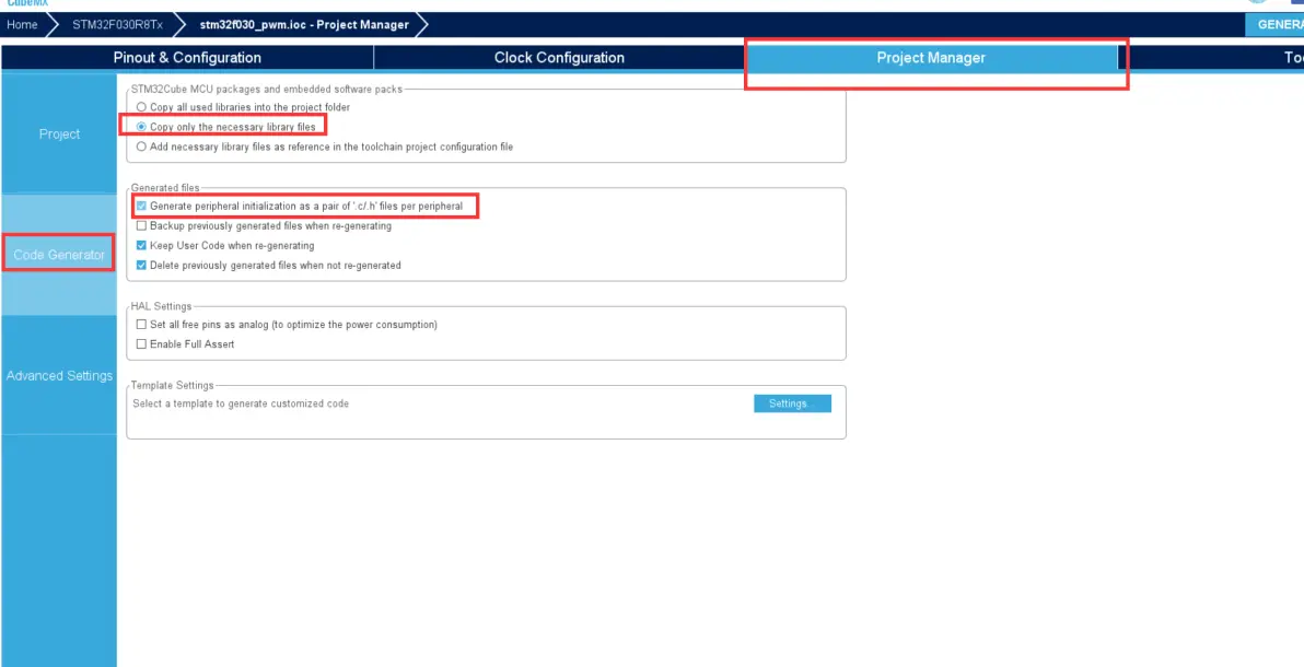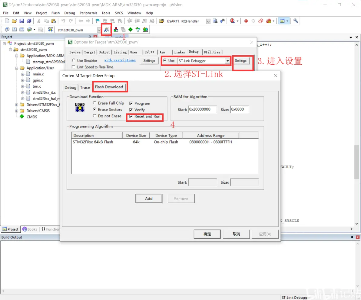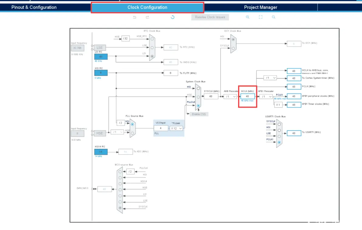 使用STM32CUBEMX选择芯片stm32f030r8,如下所示: