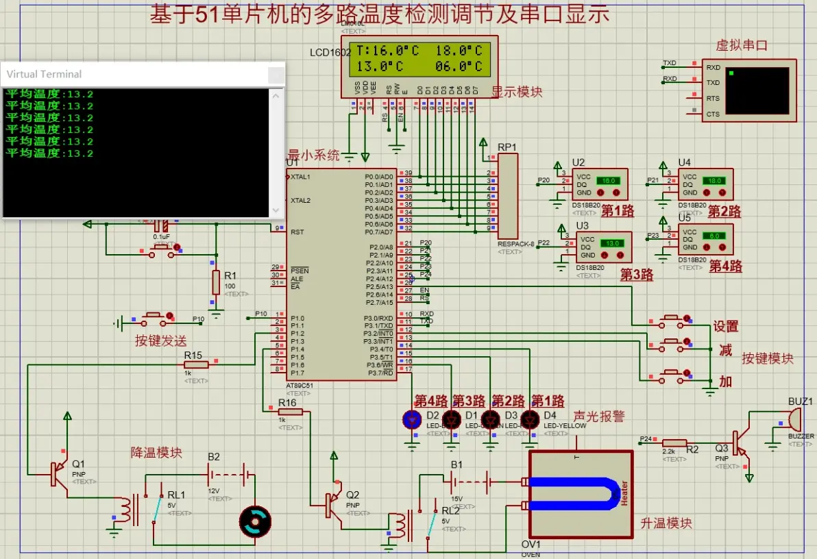 基于51单片机的多路温度检测调节及串口显示