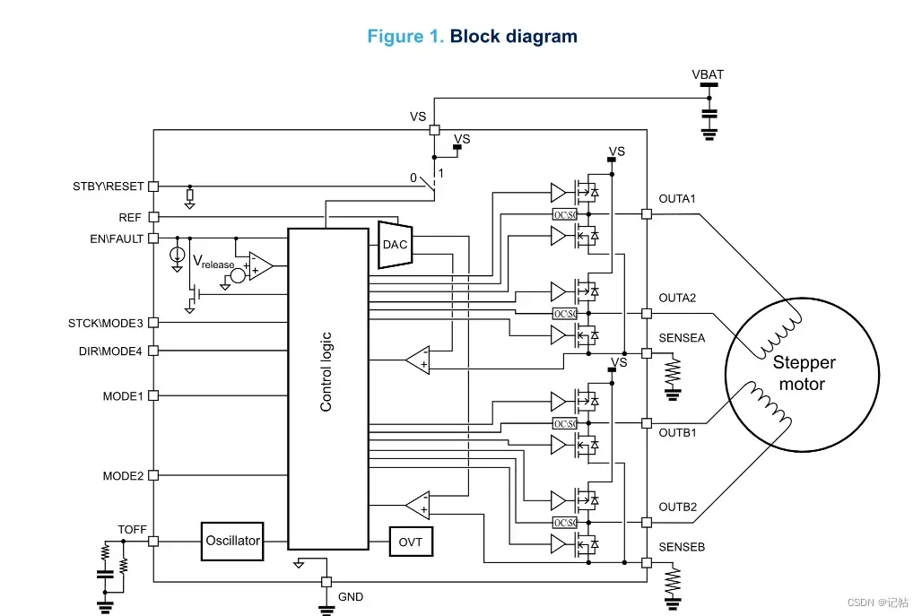 电流控制通过可编程关断时间: 芯片利用可编程关断时间来实现电流控制,这可以根据应用需求调整电机的电流,以获得最佳性能。