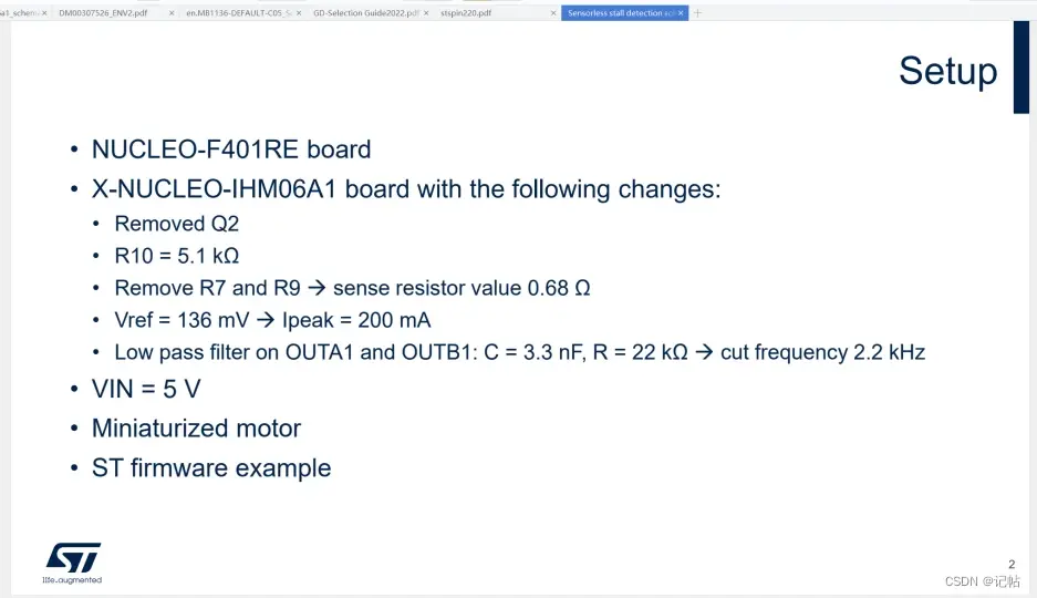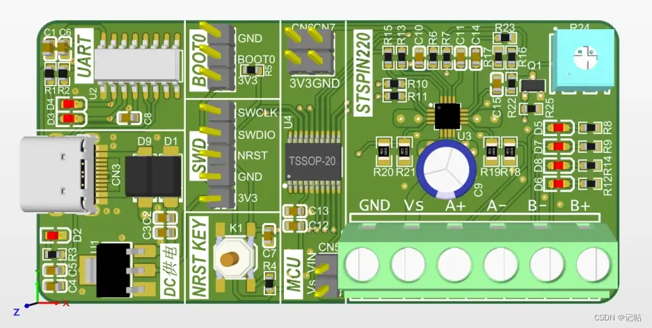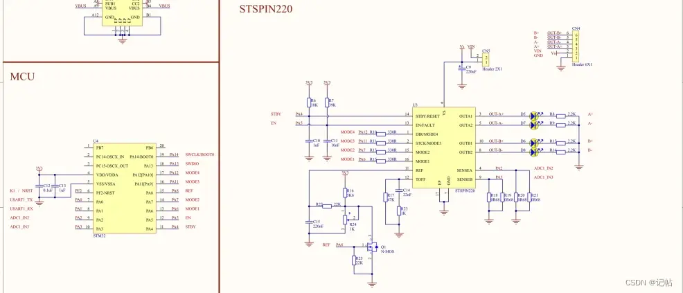 全套保护机制: STSPIN220提供全面的保护机制,包括非耗散性过电流保护、短路保护和热关断。这些保护机制确保在异常情况下电机驱动器和步进电机都能够安全运行。