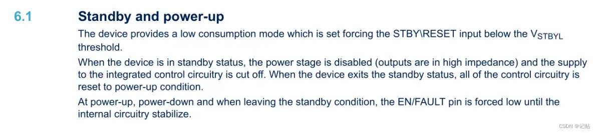 上电:首先,将驱动器供电,即将VS供电电压连接到驱动器。但是保持STBY和EN/FAULT输入都处于低电平状态。