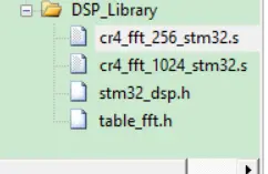 添加之后可以看到官方提供了两种快速傅里叶变换函数,分别为256点和1024点.这里视自己情况进行使用.不过要注意在这之前要调用stm32_dsp.h和table_fft.h