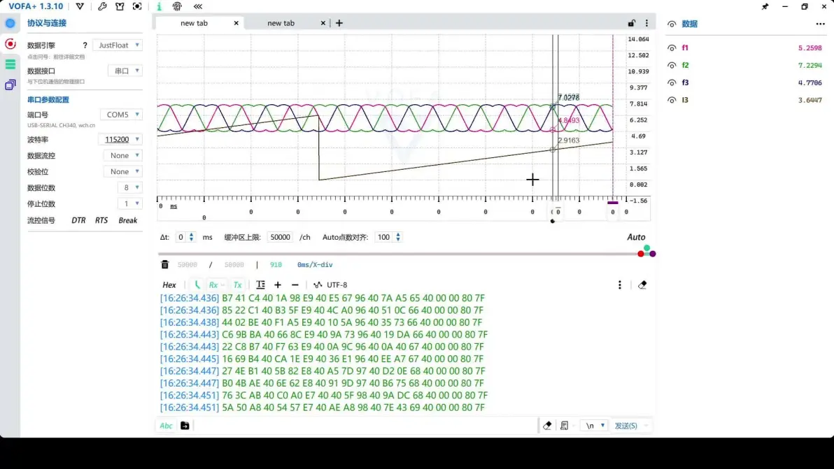本次的主角:vofa+,非常简单的一个串口工具,常见的串口功能都有,但既然它出现在了文章里就证明它没那么简单,是的,它有个非常逆天的功能:能自动将接收的数据通过绘图画出来。