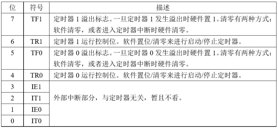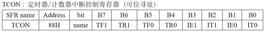 stc89c51的定时器为16位,下图给出的是定时/计数器相关的寄存器TCON