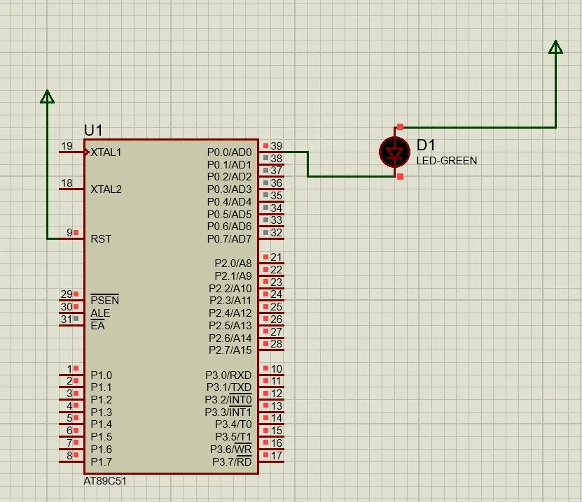 本次在P0^0口接上一个LED灯希望LED灯能够1s亮,1s灭。