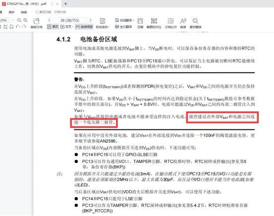 1 简介 今天主要来谈谈MCU的设计,我使用过的MCU的型号包括意法半导体的STM32、华大GD32、Infineon的CY8C5868LTI-LP039以及MicroChip的ATSAME70,今天的主角是意法半导体的STM32最小系统设计,其它MCU电路设计后续进行分享。 2 最小系统 STM32的最小系统设计都是类似的,今天以STM32F429IGT6为例。STM32最小系统包含了 电源电路 、 配置电路 、 复位电路 、 时钟电路 、下载电路。 2.1 电源电路设计 STM32手册设计指导: VDD电源 STM32一般采用3.3V供电,根据手册VDD的供电范围1.7V~3.6V,该电源一般用于外部IO,使能