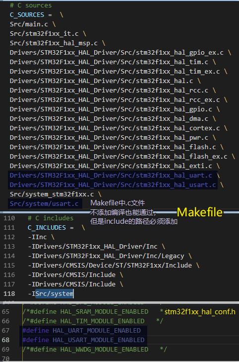 由于测试的应用场景较为简单,很多用法都用不到,故在配置的时候,就没有使能: