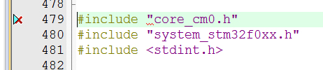 ......LibrariesCMSISDeviceSTSTM32F0xxIncludestm32f0xx.h(479): error: #5: cannot open source input file "core_cm0.h": No such file or directory
