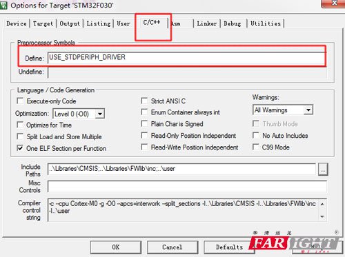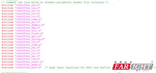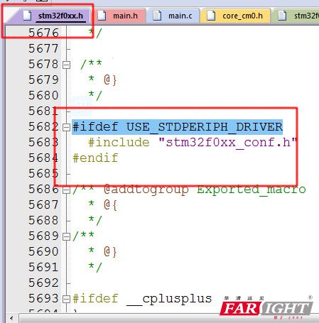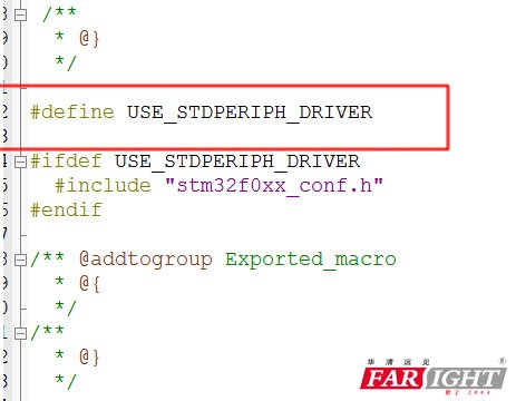 如果定义USE_STDPERIPH_DRIVER这个宏,那么stm32f0xx_conf.h头文件将被包含!那么问题就解决了!我们只需要定义这个宏就好!